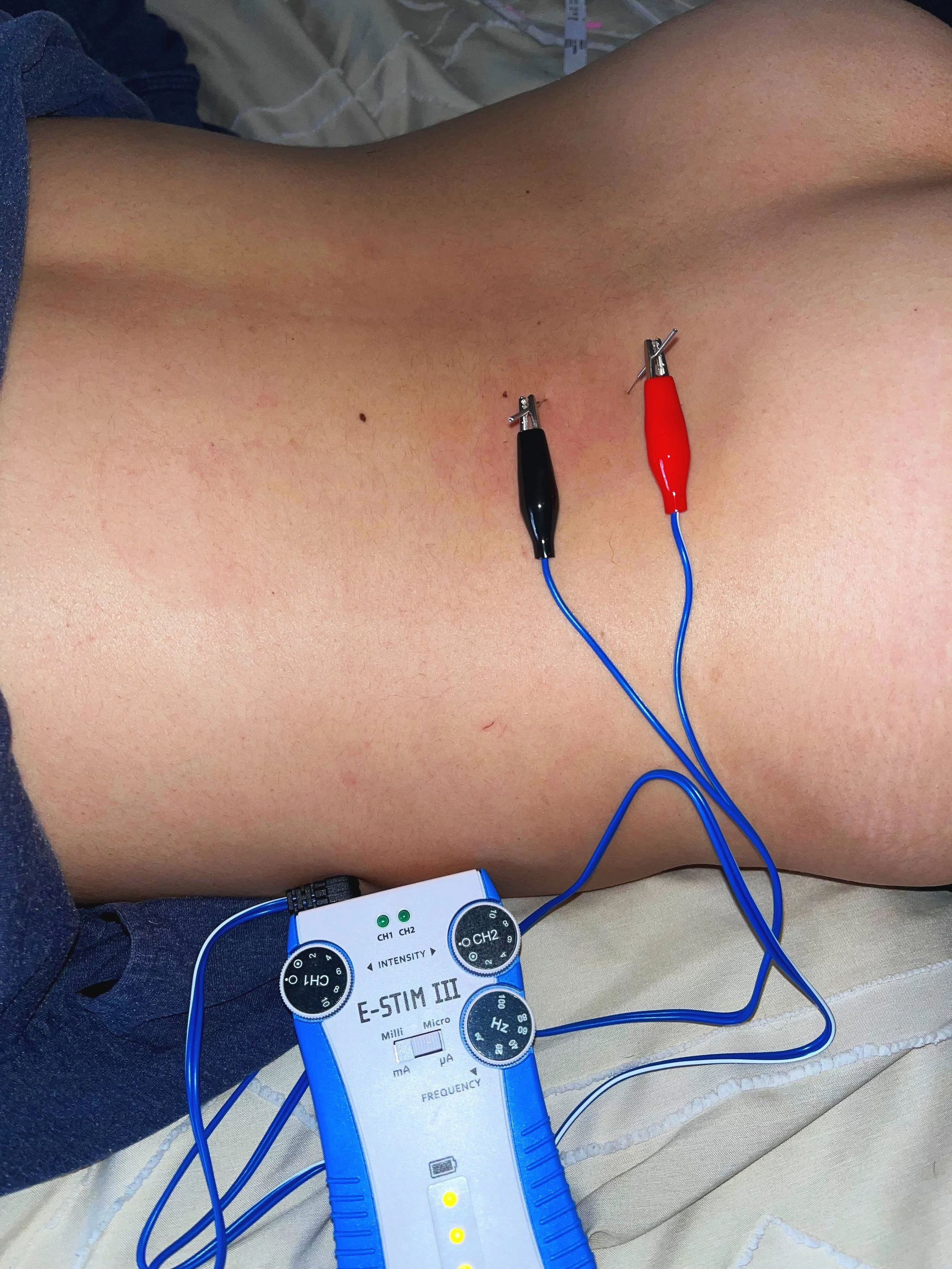 Therapeutic technique that combines dry needling with electrical stimulation to reduce muscle tightness, promote tissue healing, and improve overall muscle function.